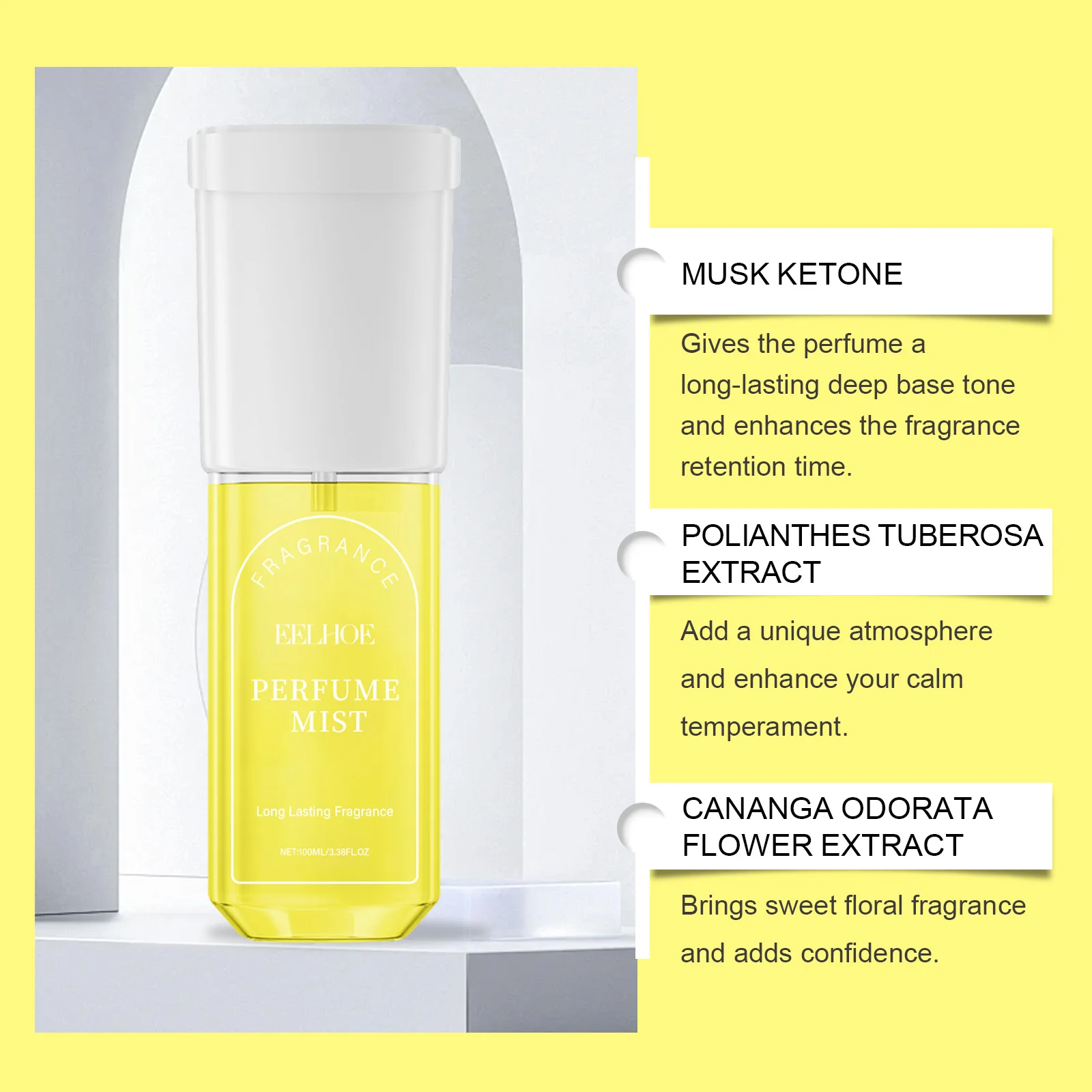 EELHOE Body Fragrance Spray (Ylang-Ylang Night Fragrance) is a captivating and pleasant essence designed to attract the opposite sex and exude lasting charm. With a floral scent and a gentle, alcohol-free formula, this perfume enhances your unique feminine beauty and confidence.