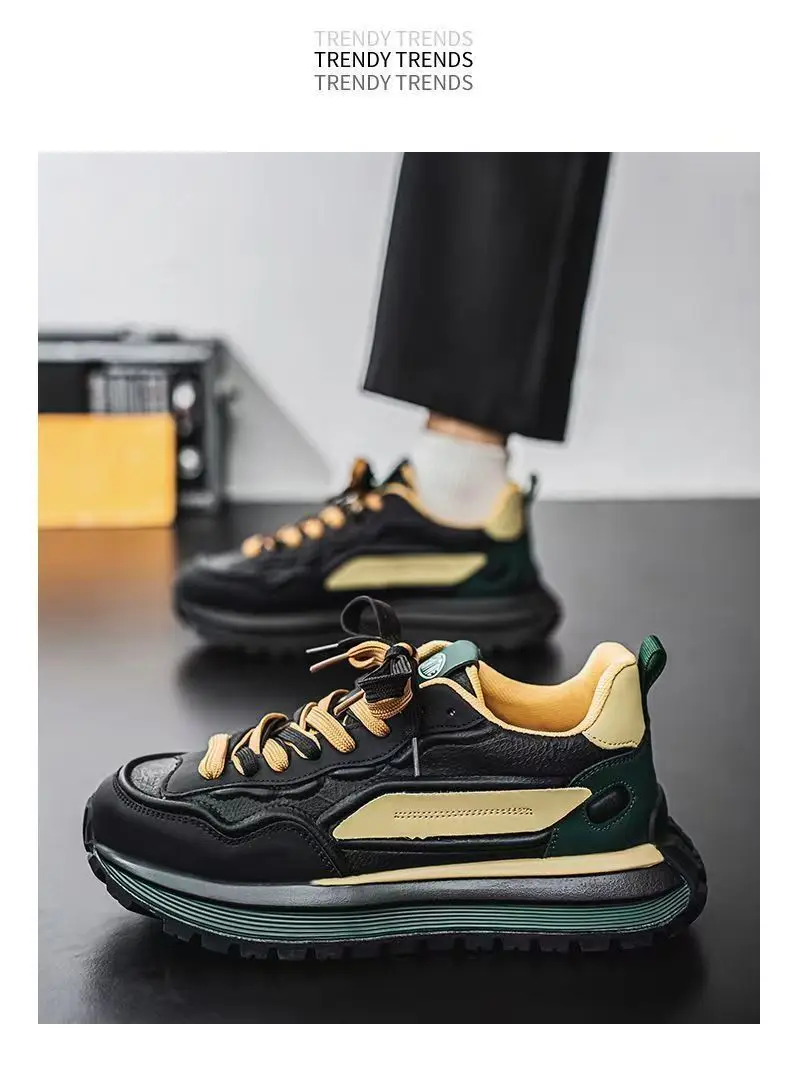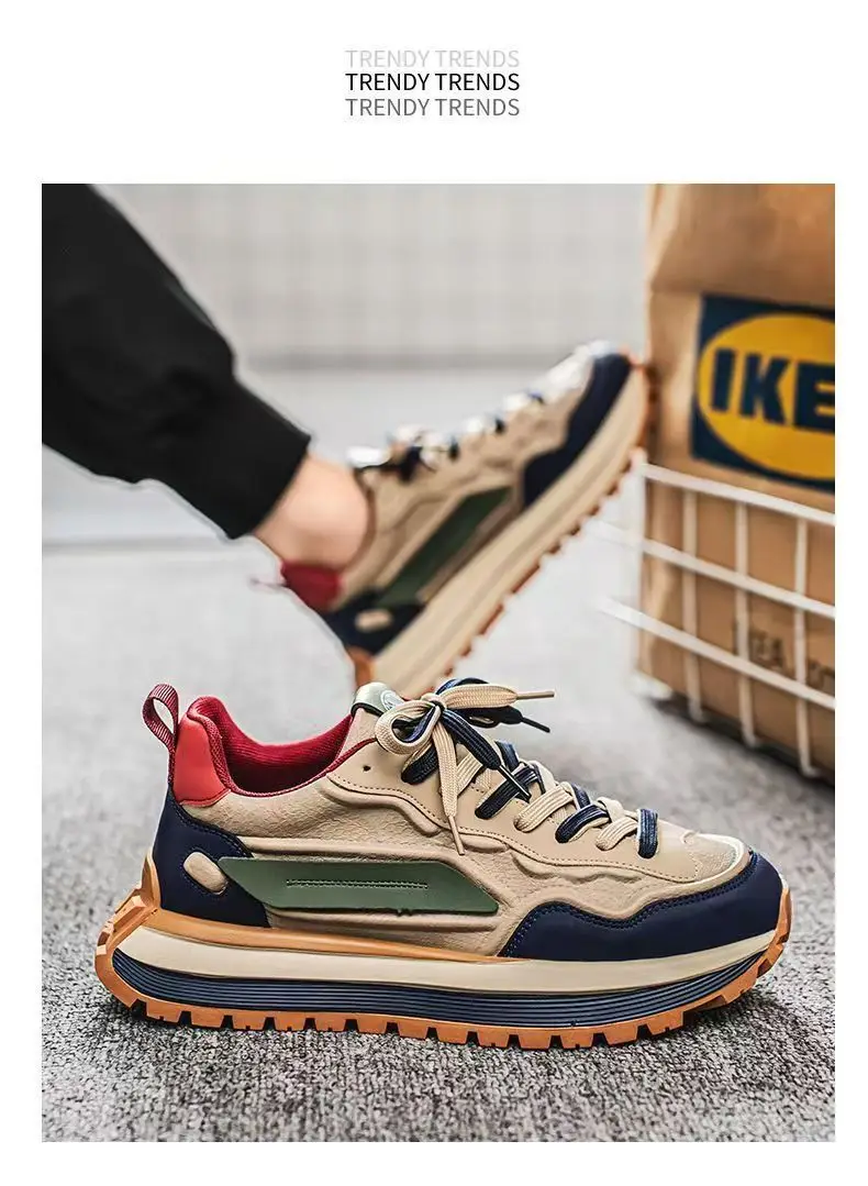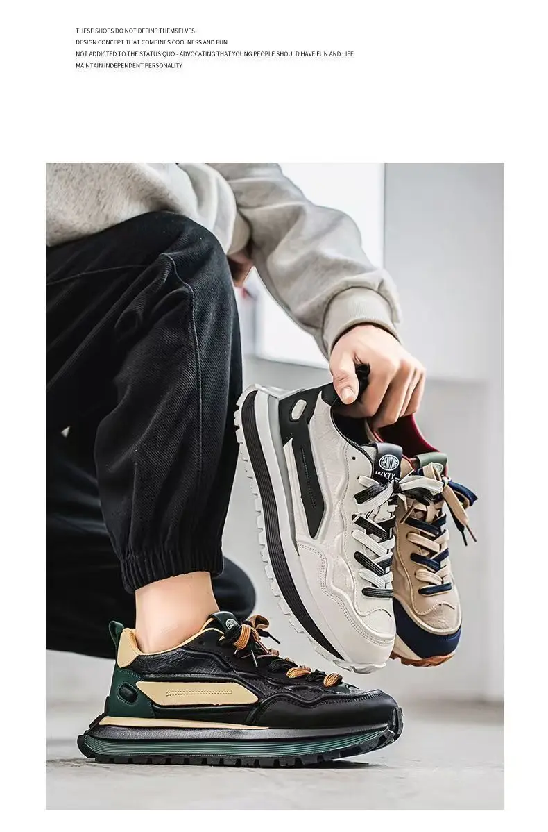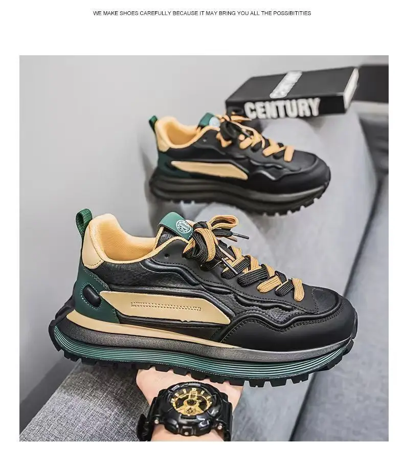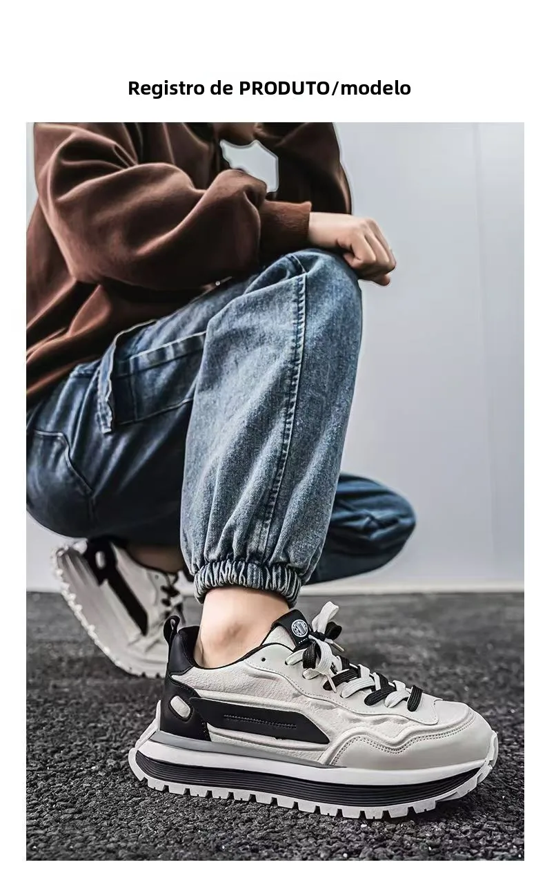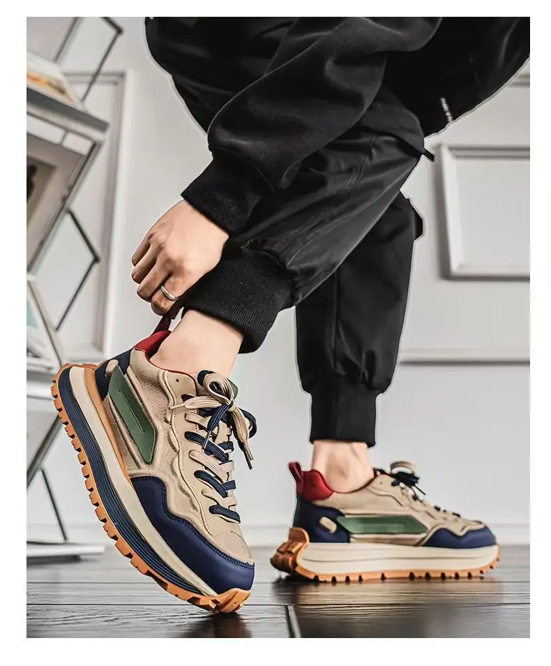 Get trendy with this new sneaker style that combines comfort, bold design, and a retro touch. This sneaker, in the popular "Dad Shoe" style, is the perfect choice for men who want a casual, modern shoe with the added benefit of discreet height gain.
