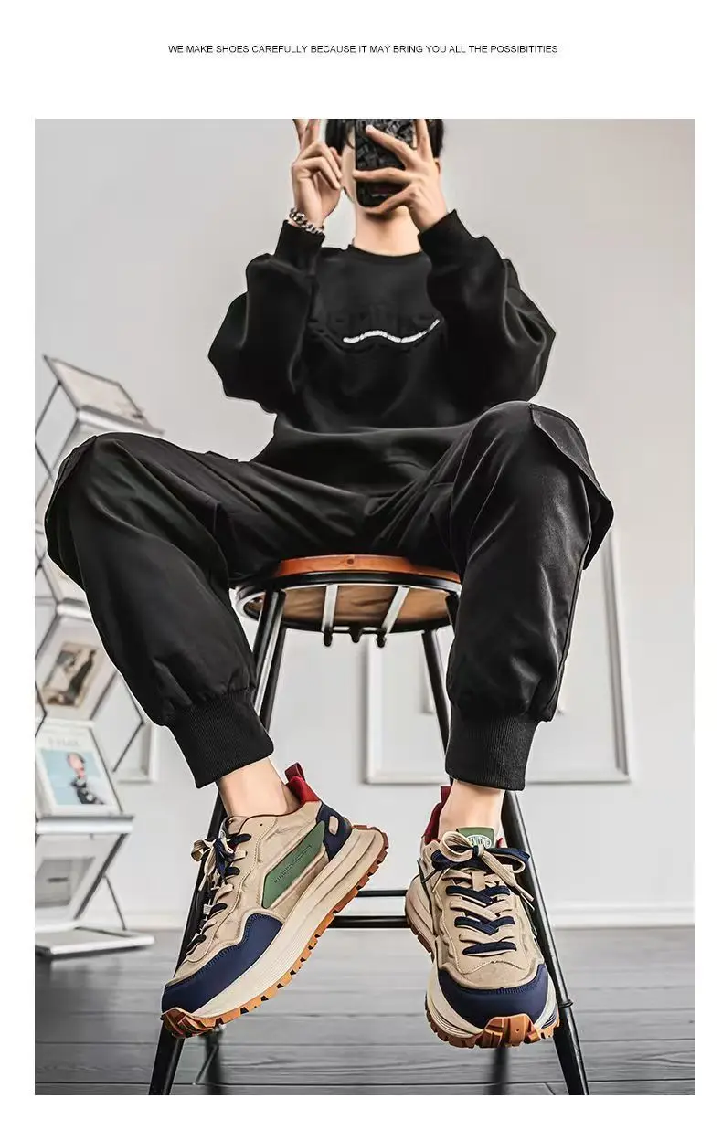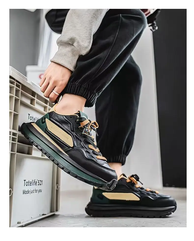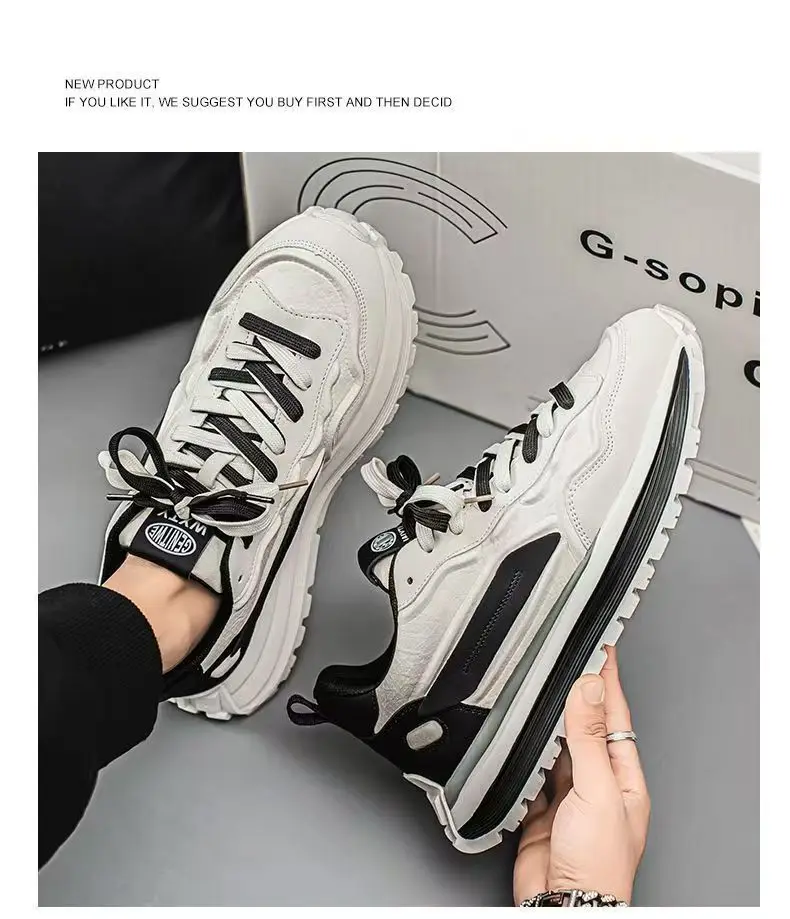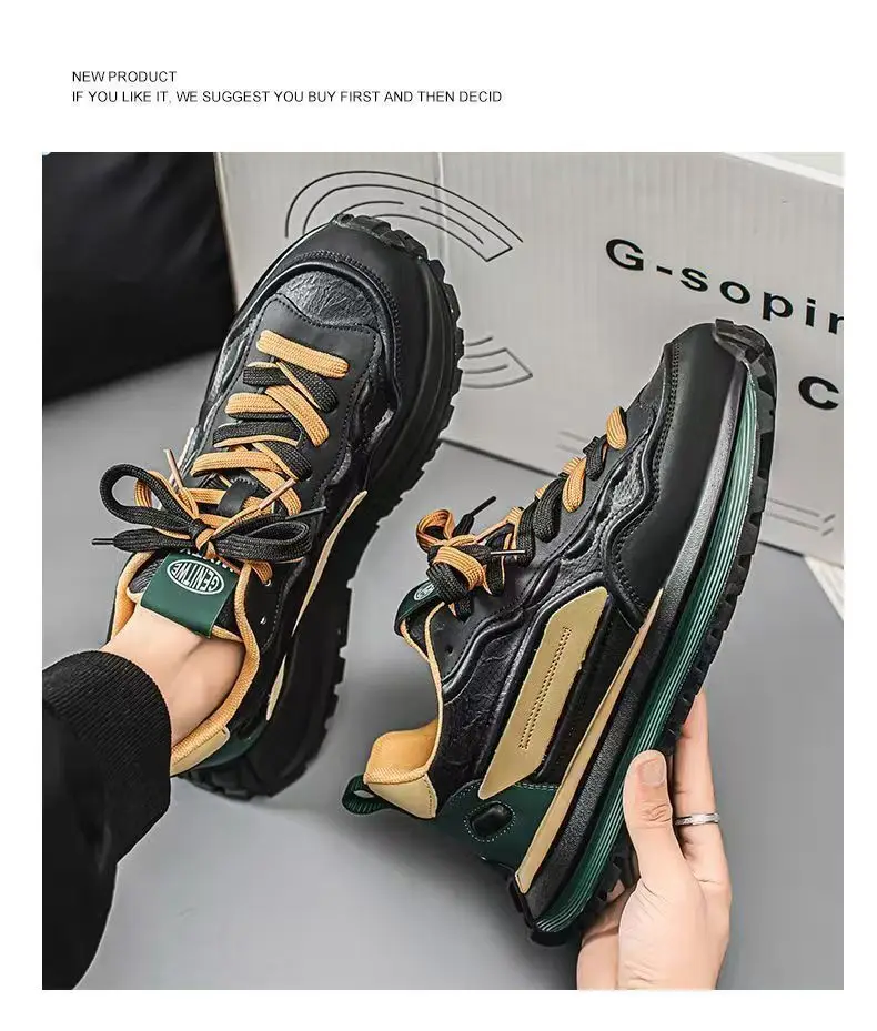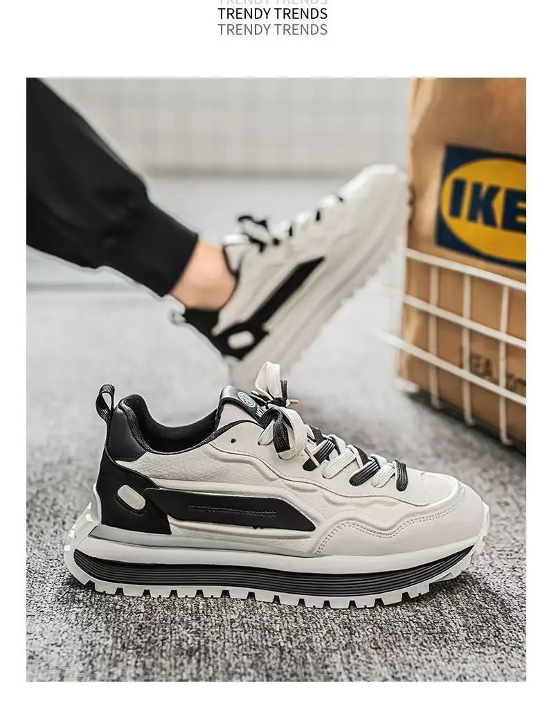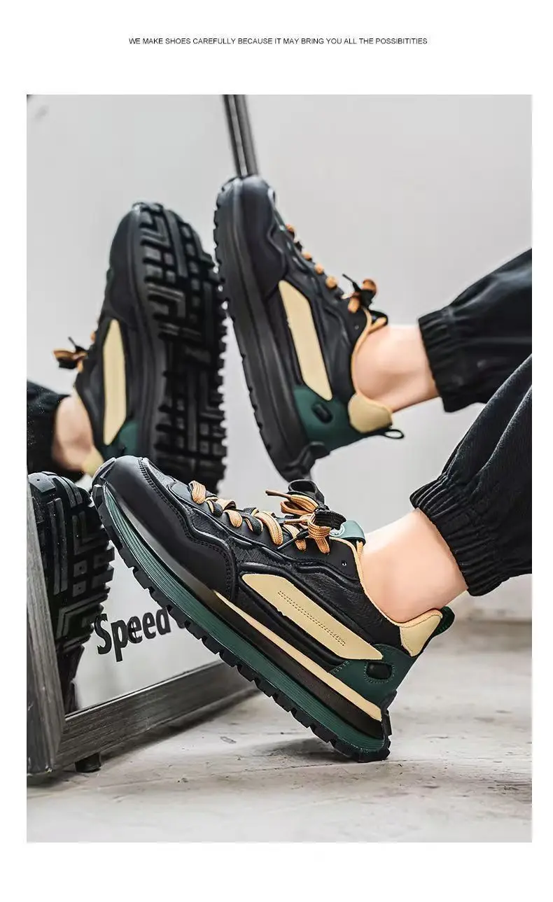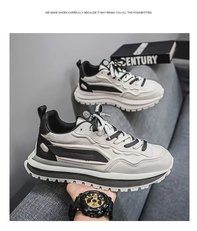 Get trendy with this new sneaker style that combines comfort, bold design, and a retro touch. This sneaker, in the popular "Dad Shoe" style, is the perfect choice for men who want a casual, modern shoe with the added benefit of discreet height gain.