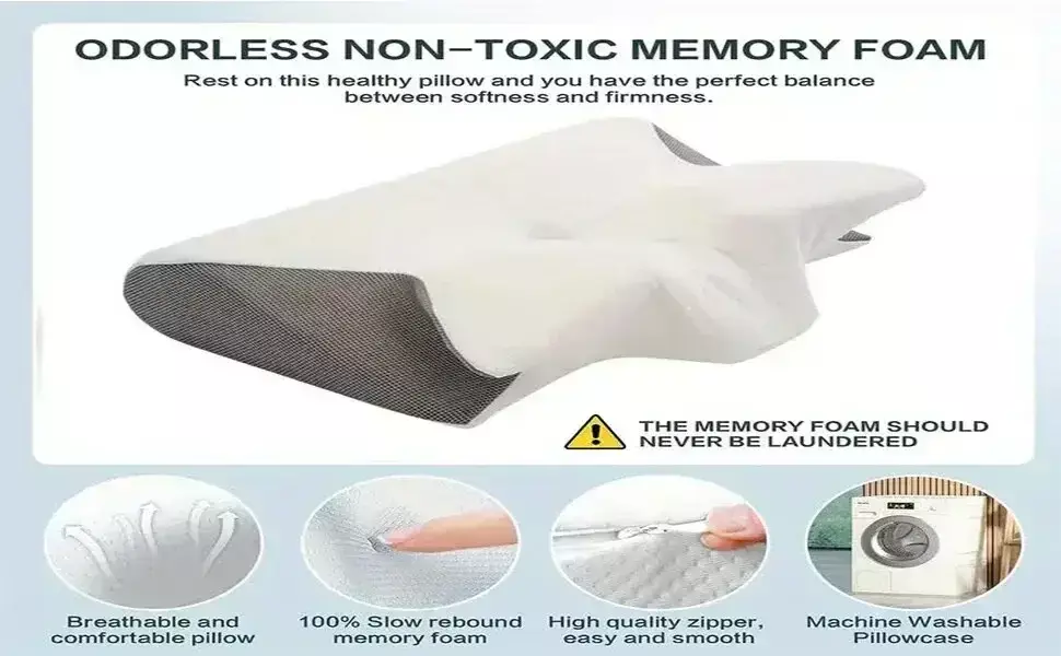 Custom Memory Foam: Made with memory foam, the pillow conforms to the shape of your neck, offering fully customized support and comfort.