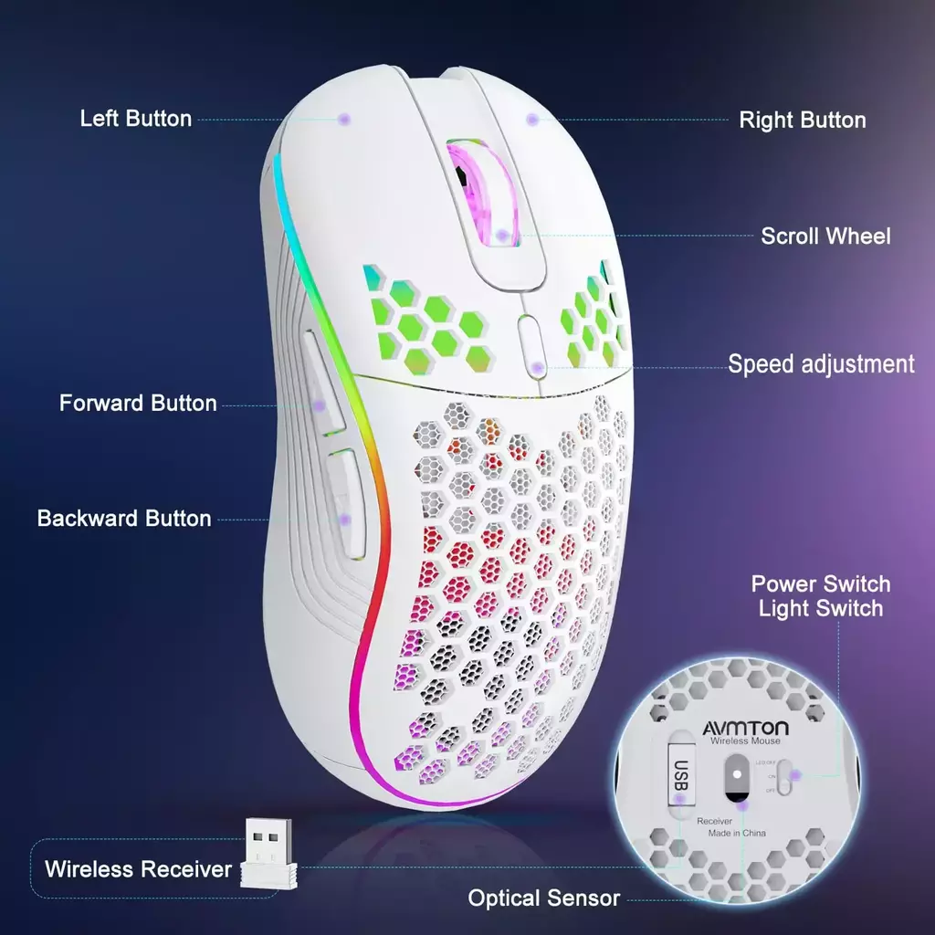 Lleva tu experiencia de juego y trabajo al siguiente nivel con el ratón inalámbrico para juegos SZKOSTON. Este ratón está diseñado para ofrecer el equilibrio perfecto entre rendimiento, comodidad y estilo, garantizando un control total en cualquier situación.