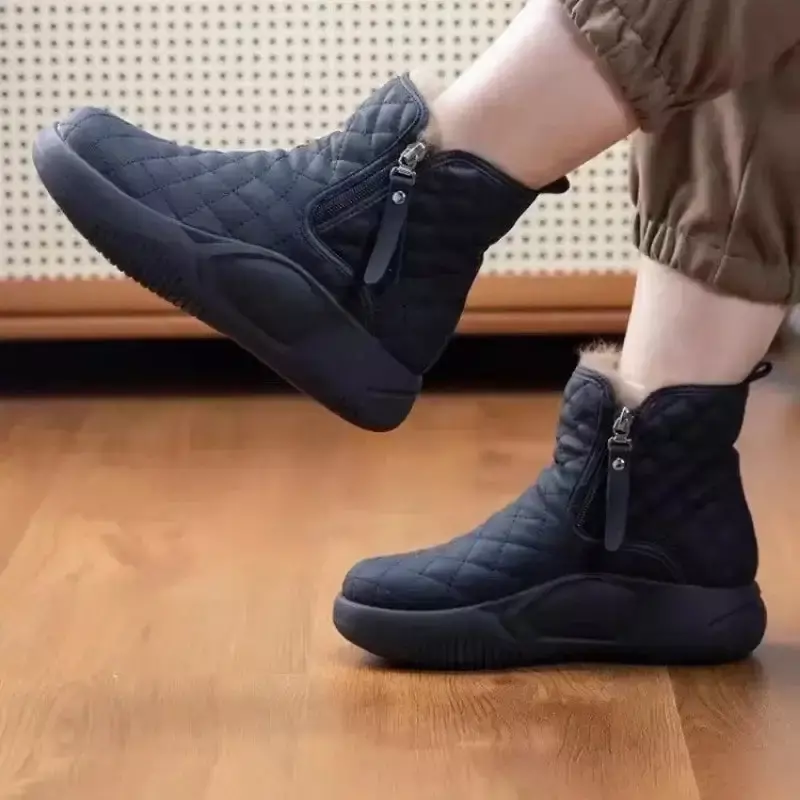 A Bota Feminina Cano Médio Acolchoada é ideal para enfrentar os dias frios com máximo conforto. Seu design acolchoado aliado ao forro interno peluciado proporciona isolamento térmico, mantendo os pés aquecidos mesmo nas temperaturas mais baixas. O solado emborrachado antiderrapante garante segurança na pisada, enquanto o zíper lateral facilita o calce no dia a dia.